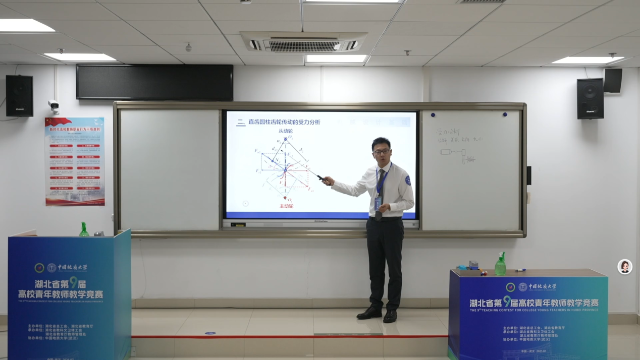 祝锋老师的参赛节段“直齿圆柱齿轮传动的受力分析”充分体现了“以员工为中心”的教学理念。通过三峡升船机的工程案例导入课程,将爱国主义情怀融入专业知识教学,引导员工从“体验者”“探究者”到“思考者”的角色转变,筑牢知识根基,培养工程实践能力。这种能力本位的教学导向,不仅激发了员工的学习兴趣,也为工科教学提供了创新范例。
