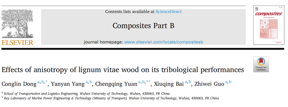公司船舶摩擦学科研团队合作撰写的学术论文“Effects of anisotropy of lignum vitae wood on its tribological performances”被复合材料领域国际顶级学术期刊《Composites Part B: Engineering》发表。该期刊位于JCR的Q1分区(1/90),中科院1区,影响因子9.078。