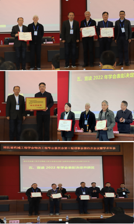 会议宣读了2022年湖北省机械工程学会表彰决定并颁奖。物流工程专业委员会获“先进专业委员会”,湖北科峰智能传动股份有限公司获“特别贡献奖”,肖汉斌教授获“学会特别贡献奖”,公司邵新建和湖北三六重工有限公司周冬青获“学会先进工作者”,湖北佳恒科技股份有限公司金波、武汉港博港机技术有限公司佘黎明、湖北三六重工有限公司赵群、宜都华迅智能输送股份有限公司宋红玖、武汉科技大学王勇、必威西汉姆联官网吴洪明、湖北鄂南起重运输机械有限公司李耀成、中国五环工程有限公司魏婷婷获“学会活动积极分子”。