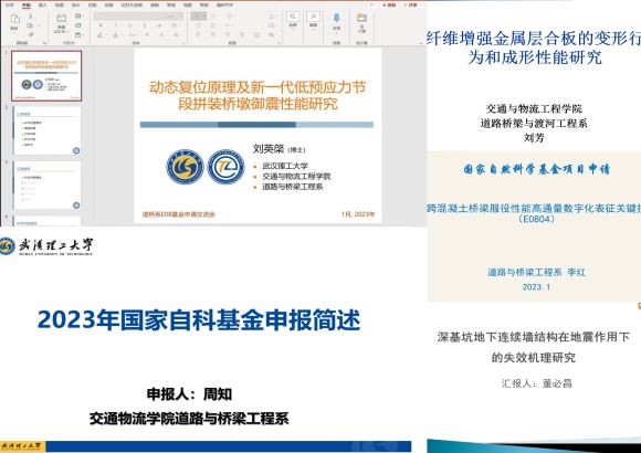 根据公司国家自科基金申报分组辅导部署,2023年1月13日上午9点~12点,组长杜志刚教授、成员兼系主任李斌副教授通过线上会议的方式组织召开了国家自然科学基金申报小组讨论会。道路桥梁与渡河工程系10多名老师参加了讨论会。