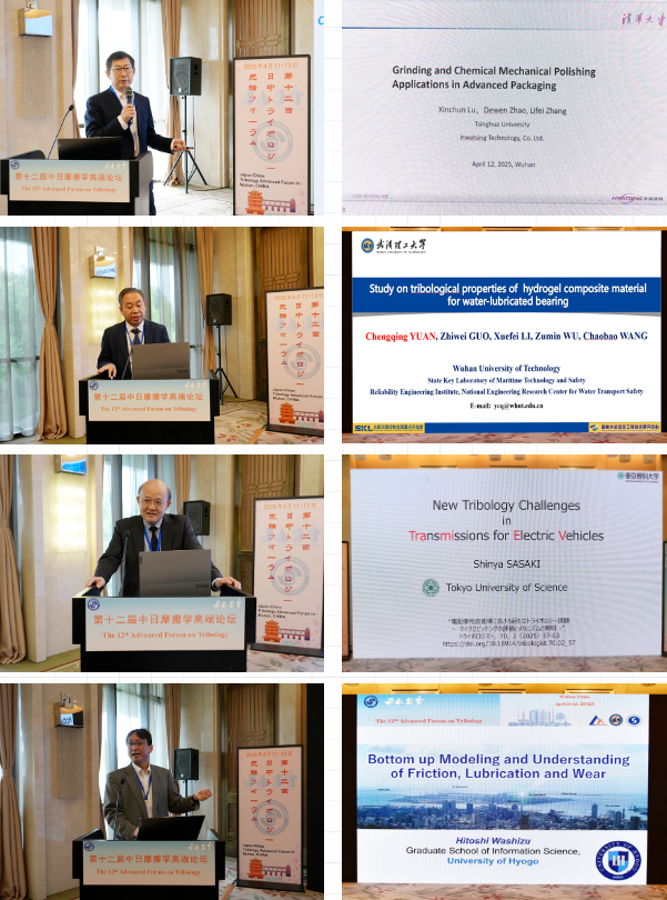 2025年4月11日至13日,由中国机械工程学会摩擦学分会和日本摩擦学会共同主办,中国机械总院集团武汉材料保护研究所有限公司、特种材料表面工程全国重点实验室、必威西汉姆联官网、水路交通控制全国重点实验室和船舶热能动力全国重点实验室共同承办的第十二届中日摩擦学高端论坛(The 12th Advanced Forum on Tribology)在武汉举行。来自中日高等院校、科研院所、企业界的70余人参加了会议。本次论坛设置4个主旨报告、17个邀请报告以及22个张贴海报。