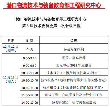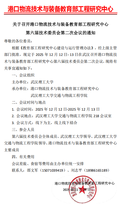 【基地建设】关于召开港口物流技术与装备教育部工程研究中心第六届技术委员会第二次会议的通知