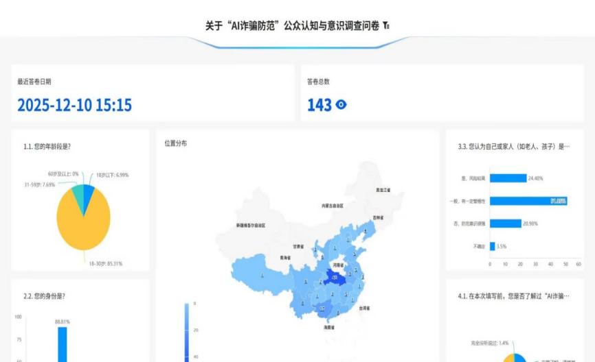截止12月15日道桥卓越2501班的问卷收集与数据整理,团支部共回收有效问卷143份。后续,道桥2501班团支部将对问卷数据进行系统分析,形成翔实的调查报告,并依托调查结果开展系列AI反诈主题宣讲活动,用实际行动助力构建平安和谐的校园环境。