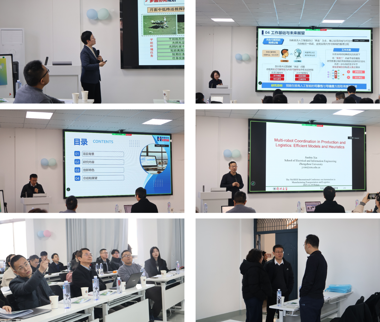 在会议学术交流环节,专家们分享了诸多前沿成果。在智能制造与系统安全领域,报告深入解析了大规模复杂无人系统的智能感知技术及物联制造系统的可靠性优化;在智慧交通与物流调度方面,探讨了港口自动化码头的资源集成调度、高铁—无人机联运协同优化以及应对突发状况的路径规划算法;针对机器人技术方面,多位学者展示了电子皮肤、人体姿态估计及四足机器人复杂地形适应能力的最新进展。